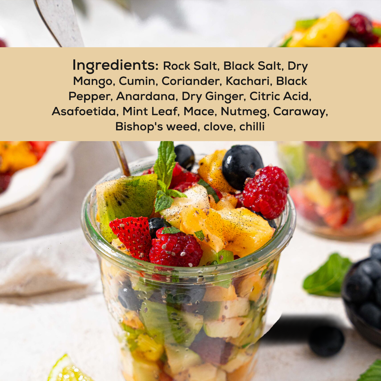 Spicy, tangy, and full of street-style soul, our premium Chaat Masala is a classic blend of cumin, black salt, dry mango, and more, crafted to tingle your taste buds and support digestion. A nostalgic essential for chaats, fruits, fries, and even drinks like jaljeera.